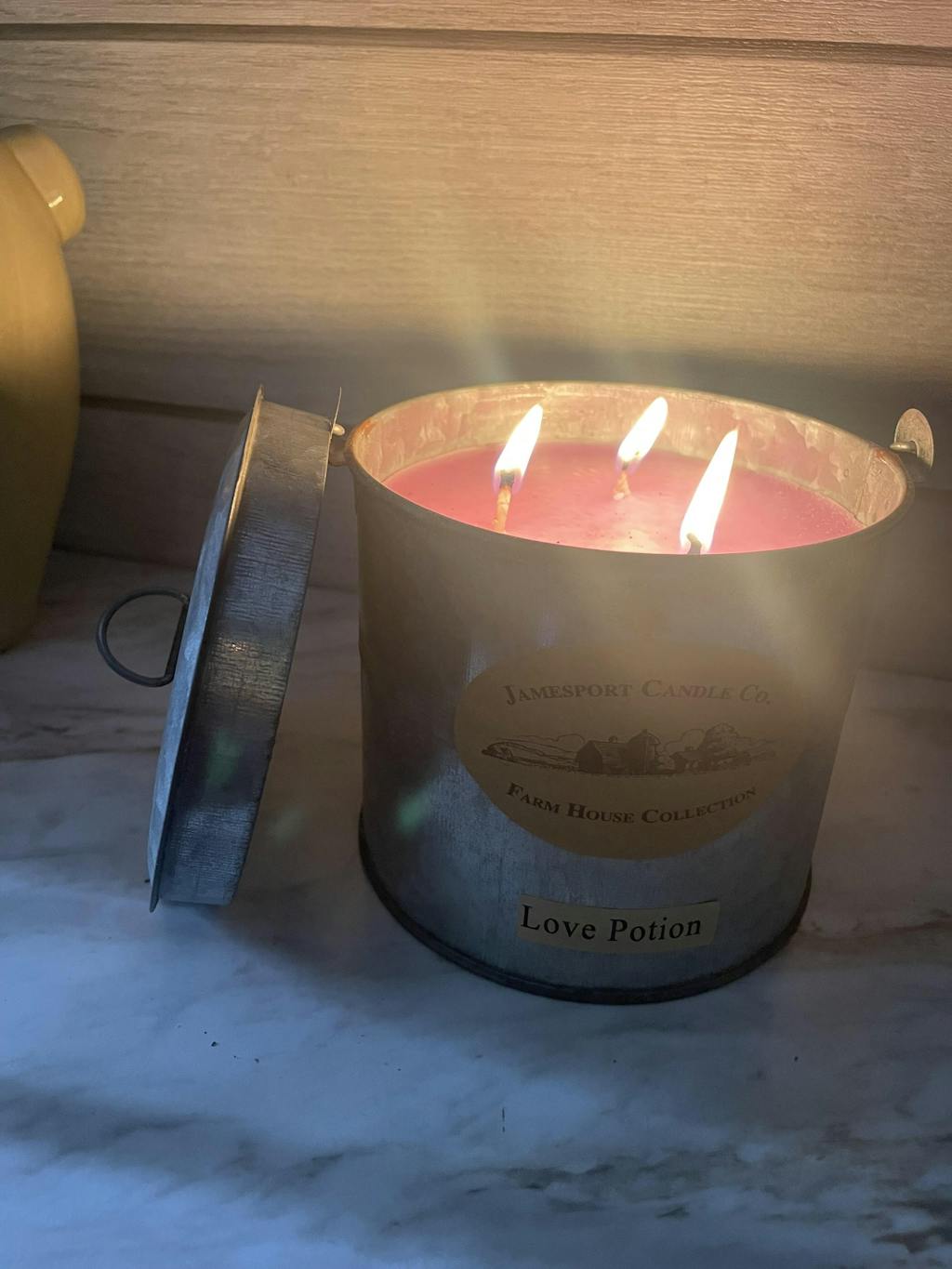 All candles are hand poured in Jamesport, Missouri. We use soy-blend wax, lead-free wicks, American-made glass, and premium fragrance oil. Some variations may occur in weight or color due to the nature of hand-pouring our candles.
